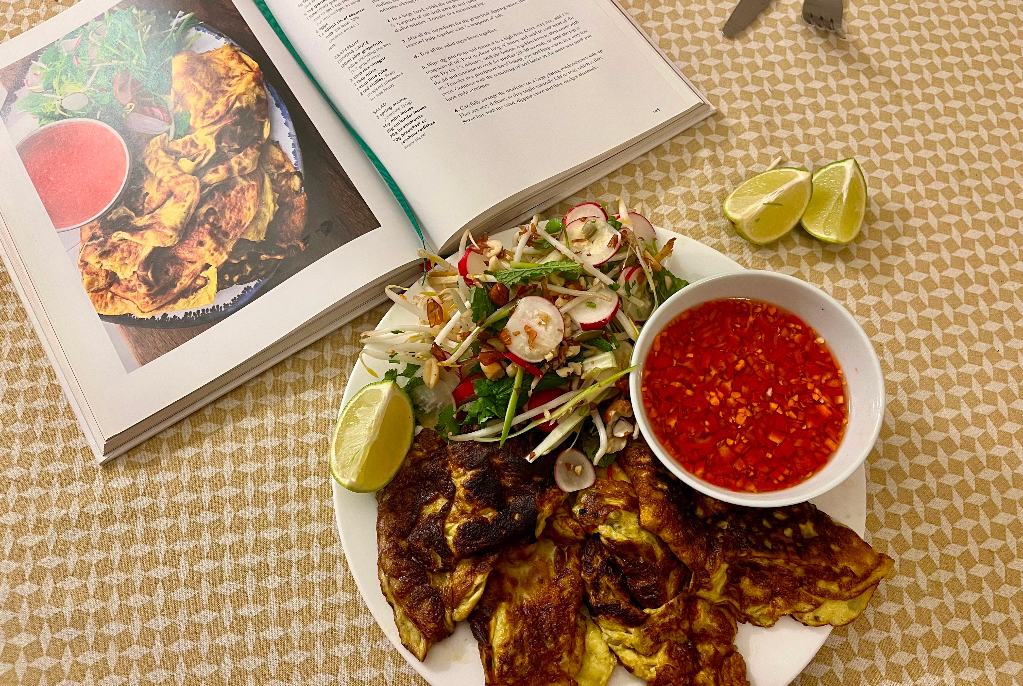 That’s when I found Ottolenghi’s recipe for my inaugural Tried & Tasted dish. In his 2020 book, Flavour, the dish is called a ‘coconut and turmeric omelette feast’, but in a previous Guardian article it’s featured among other global variations on the humble pancake.